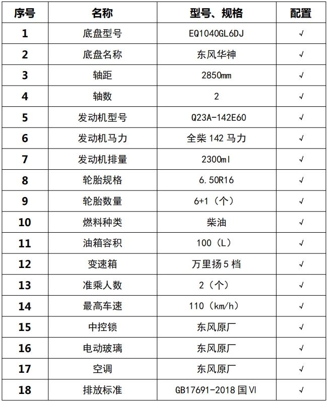 底盤技術(shù)參數(shù)